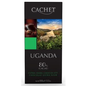 Czekolada gorzka Cachet 80% Uganda to wyjątkowy produkt belgijskiej marki Cachet, specjalizującej się w produkcji wysokiej jakości czekolad. Ta ciemna czekolada wyróżnia się intensywnym smakiem dzięki zawartości 80% kakao pochodzącego z Ugandy. Pochodzenie ziarna z regionu Semuliki w zachodniej Ugandzie gwarantuje unikalne nuty smakowe, które zadowolą nawet najbardziej wymagających smakoszy. Czekolada jest wytwarzana w Belgii, co zapewnia jej doskonałą jakość i tradycyjne metody produkcji.