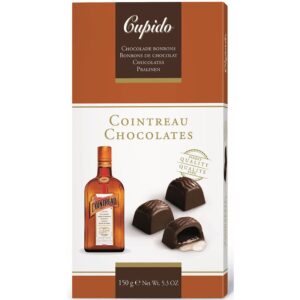 Belgijskie czekoladki z likierem Cointreau to wykwintne praliny marki Cupido, które łączą w sobie doskonałą czekoladę z intensywnym smakiem pomarańczowego likieru Cointreau. Każda czekoladka to elegancka kompozycja, idealna na specjalne okazje lub jako wyszukany prezent dla koneserów słodyczy.