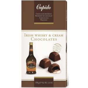 Wyrafinowane praliny belgijskie Cupido z nadzieniem Irish Whisky & Cream to połączenie najwyższej jakości belgijskiej czekolady z luksusowym, płynnym nadzieniem o smaku irlandzkiej whisky i delikatnej, słodkiej śmietanki. Każda czekoladka oferuje niepowtarzalne doznania smakowe, które zadowolą nawet najbardziej wymagających miłośników słodyczy i alkoholi smakowych. To harmonijne zestawienie tradycji belgijskiego cukiernictwa z nutą irlandzkiej elegancji czyni je wyjątkowym wyborem.