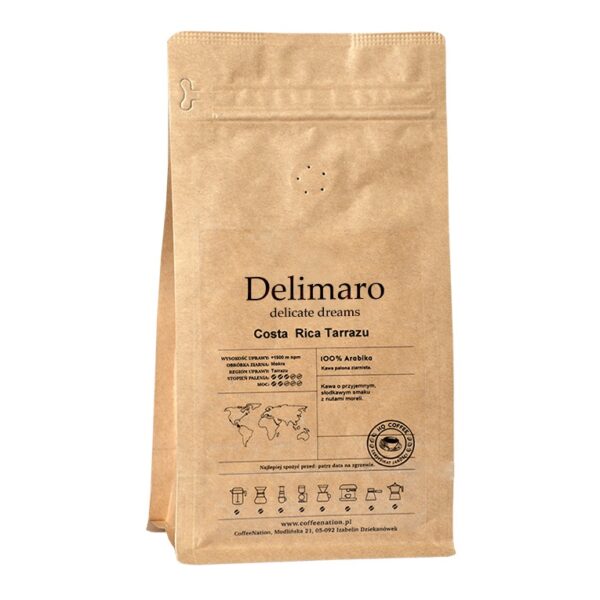 Delimaro™ Costa Rica 100% Arabika to unikalna kawa ziarnista, która pochodzi z renomowanego regionu Tarrazu w Kostaryce, cenionego za swoje wyjątkowe warunki uprawy. Ta starannie wyselekcjonowana 100% arabika wyróżnia się delikatnym, łagodnym profilem smakowym z subtelnymi nutami owoców moreli oraz przyjemną słodyczą. Kawa ta łączy w sobie wysoką jakość i naturalną świeżość, co pozwala na pełne odkrycie jej aromatu podczas mielenia tuż przed parzeniem. Dzięki finezyjnemu smakowi i aromatowi, Delimaro™ Costa Rica to doskonały wybór dla osób ceniących ekskluzywną jakość i naturalność w każdej filiżance.
