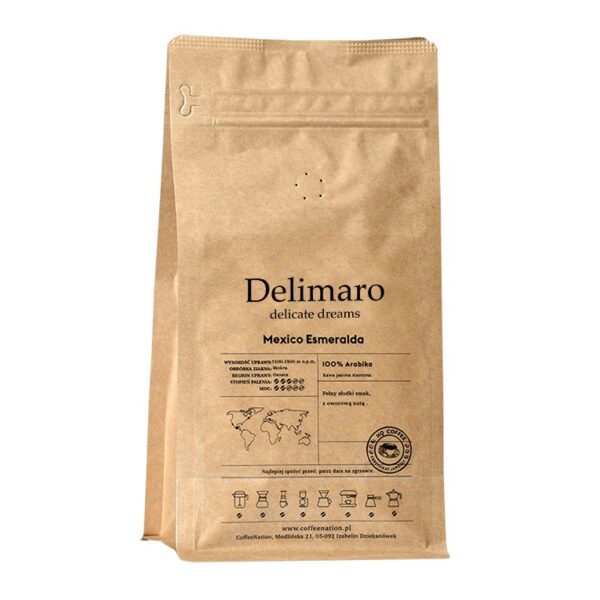 Delimaro™ Mexico Esmeralda to wyjątkowa kawa ziarnista, która zachwyca miłośników doskonałej jakości i wyrafinowanego smaku. Ta starannie wyselekcjonowana 100% arabika pochodzi z regionu Mexico, gdzie uprawiana jest na odpowiedniej wysokości, co nadaje jej unikalny charakter oraz delikatne, lekkie nuty owocowe. Kawa ta wyróżnia się pełnym aromatem oraz łagodnym smakiem, pozwalając na subtelną grę doznań podczas degustacji. Ziarna kawy Delimaro™ Mexico Esmeralda umożliwiają samodzielne mielenie, dzięki czemu każdy może dostosować intensywność naparu według własnych upodobań.
