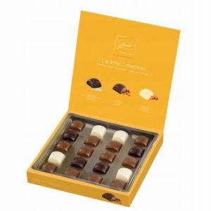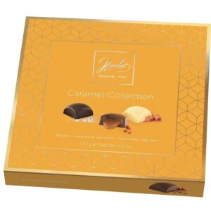 Pralinki Hamlet Caramel Collection to wykwintne belgijskie czekoladki, które zachwycą każdego miłośnika słodkości. W eleganckim opakowaniu o wadze 175 g znajduje się 20 sztuk pralinek, każda z nich to połączenie wysokiej jakości czekolady – mlecznej, ciemnej i białej – z trzema rodzajami nadzienia karmelowego: klasycznym, z solą morską oraz miękkim karmelem.